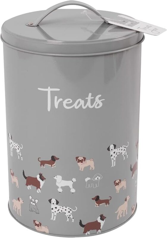 RSW Smart Choice Dog Treat Tin Biscuit Storage Tin Grey Puppy Food Storage Container Jar With Lid (SC1347)